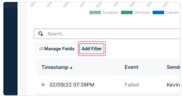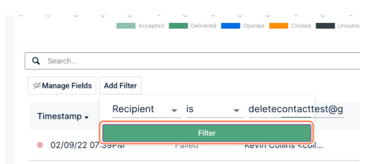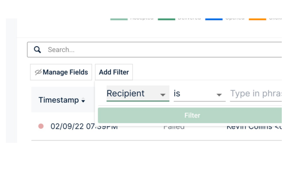 6. Select Recipient from the dropdown list and paste the email you are trying to get the delivery status for: