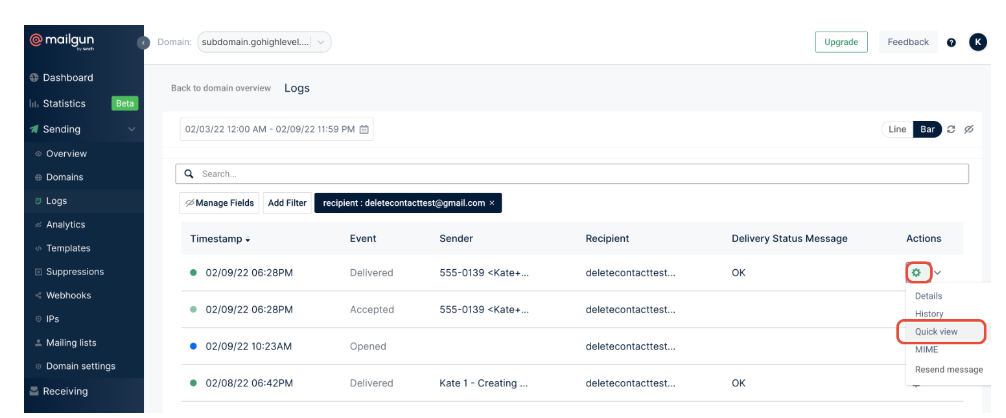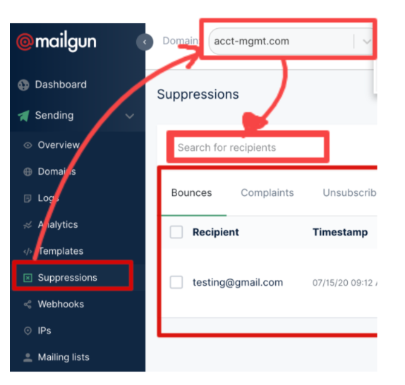 4. Select the recipient and click the trash icon on the right to remove the contact email from the Bounces tab.
