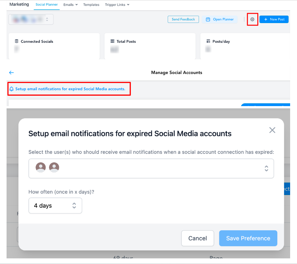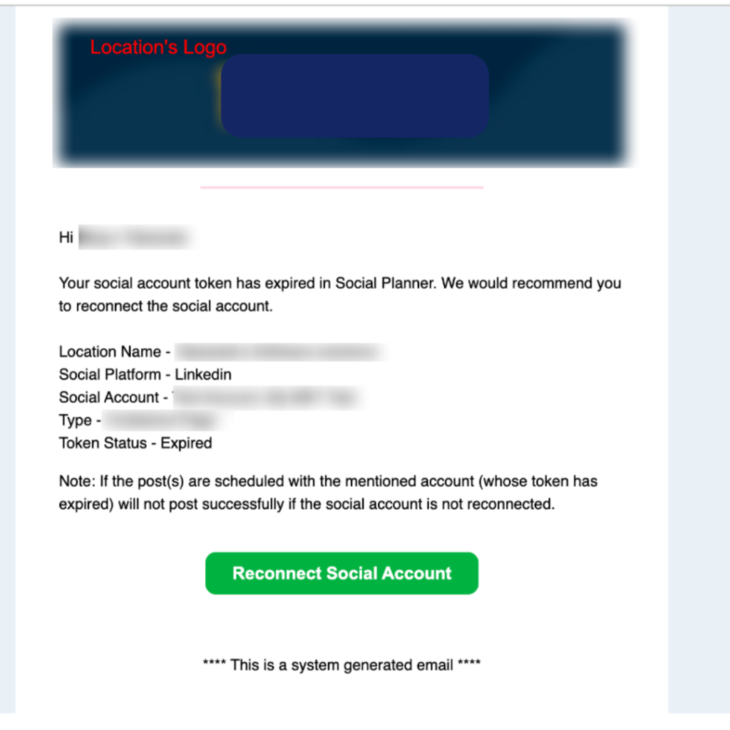 Social Planner Reconnect expired token notification email - [Can be disabled]