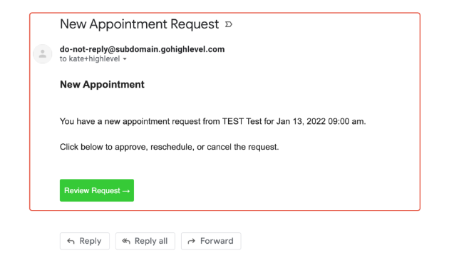 The “New Appointment Request” notifications are sent from the Unassigned Calendar and the Group Calendar