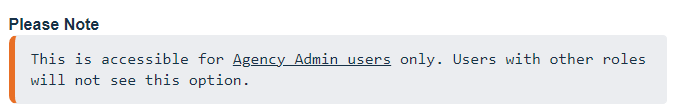 This feature can be accessed by Agency admin users only. Users with other roles will not be able to see this option.