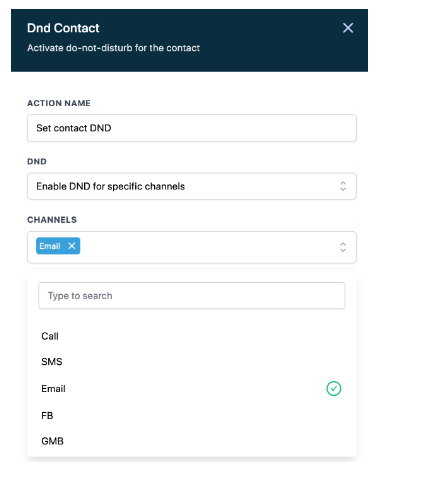 Look up the action to Set contact DND