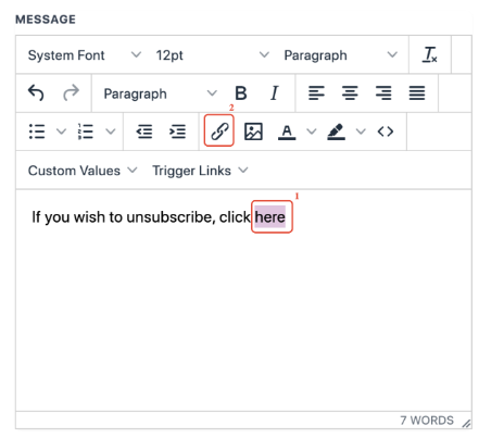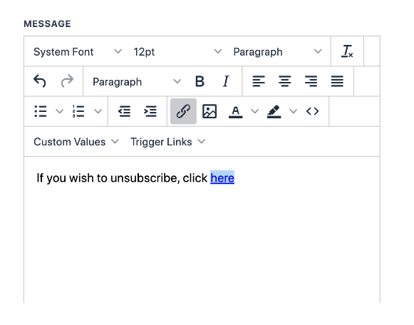 5. Now you can integrate the trigger link as the unsubscribe link in the email footer