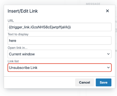 3. Replace the default unsubscribe link url with the Trigger Link