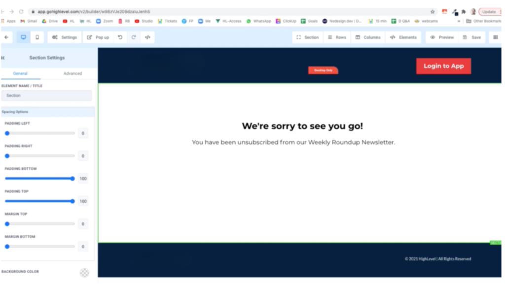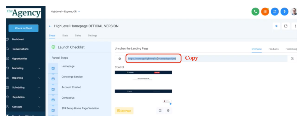 1. Create a landing page with messaging you want people to see when they unsubscribe